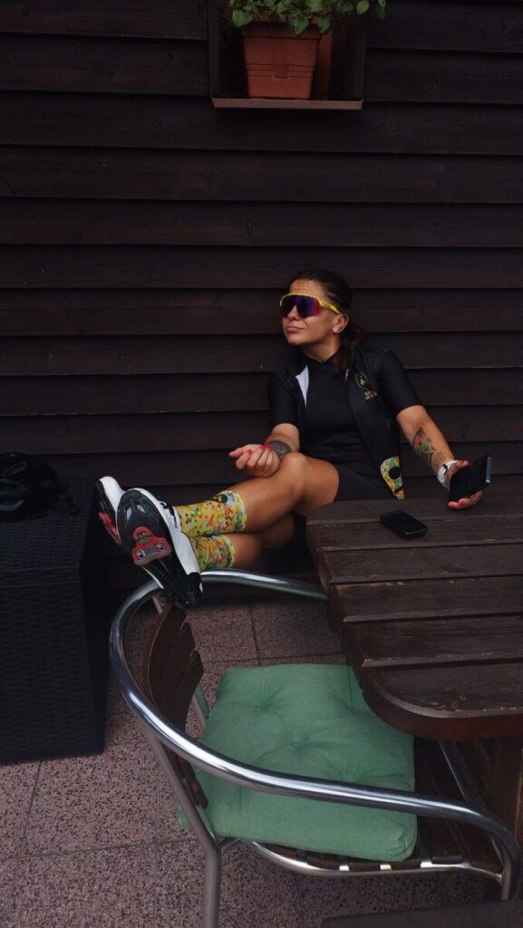 Poza wszystkim – poza stylem, poza wodotryskami, poza malowaniem – ważne jest to, żeby okulary na nosie podczas jazdy na rowerze były. Podczas jazdy w peletonie, kiedy lecisz komuś bardzo blisko (bliżej niż właśnie ze strachem pomyślałaś/pomyślałeś), możesz oberwać w oko piaskiem spod koła, owadem, paprochem, czymkolwiek. Strzał tym czymkolwiek w oko jest niebezpieczny (no zaskoczona/zaskoczony majtniesz kierownicą, czego nikt w tym peletonie nie będzie się spodziewać). Gmeranie w oku podczas ciasnej jazdy w grupie przy większej prędkości TAKŻE nie będzie bezpieczne. Zahamowanie nagle komuś przed twarzą, bo coś Ci wleciało do oka – pozostawiam Twojej wyobraźni.